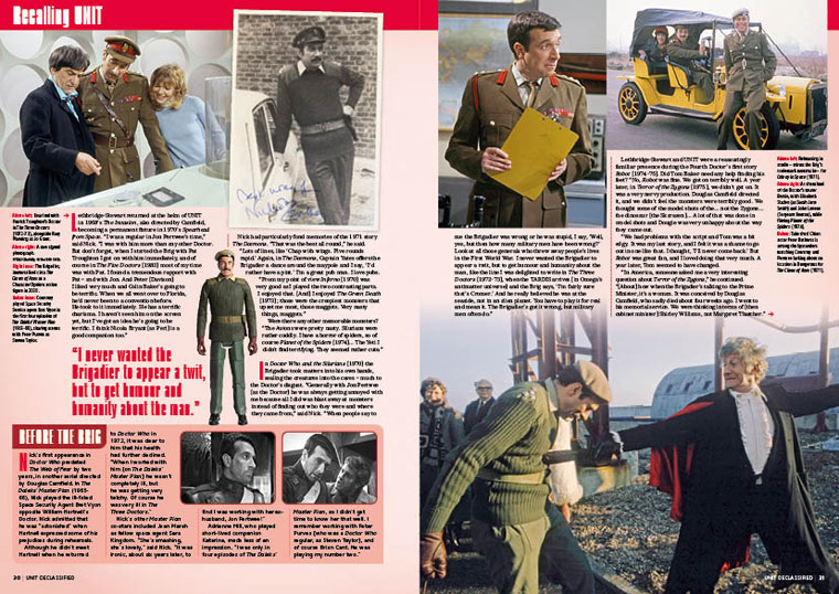 • Exclusive new interviews with UNIT personnel, including Angela Bruce (Brigadier Bambera), Katy Manning (Jo Grant), Fernanda Marlowe (Corporal Bell) and former EastEnders regular Derek Martin.