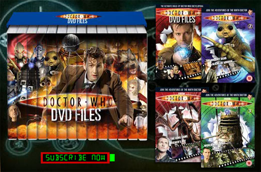 “Doctor Who DVD Files is something unique – it’s not just a chance to collect every episode of the series since the Doctor’s return, the pull-apart magazine is incredibly ambitious. You get 24 pages every fortnight packed with insider information and specially-commissioned artwork produced by members of the Doctor Who art department. Because of the way it builds up you’ll soon have hundreds of pages of invaluable information,” says GE project manager Ben Robinson. The magazine features never-seen-before photography, exclusive behind-the scenes interviews, episode guides, profiles of monsters, heroes and villains, new artwork showing classic moments from the show’s history and specially created diagrams and cutaways produced by members the Doctor Who art department.