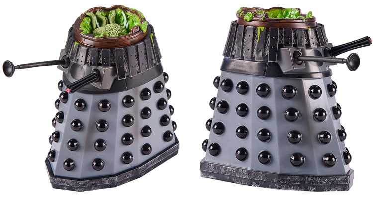 Her accessories consist of a Dalek Trooper gun, as used by Commander Lytton’s Dalek squad, as well as a Movellan virus canister. Also included is a destroyed ‘Resurrection’ style Dalek, with a blasted and scorched casing, Internal life support tank, splattered with bright green Dalek ‘Gloop’ and showing mutant Dalek creature within.